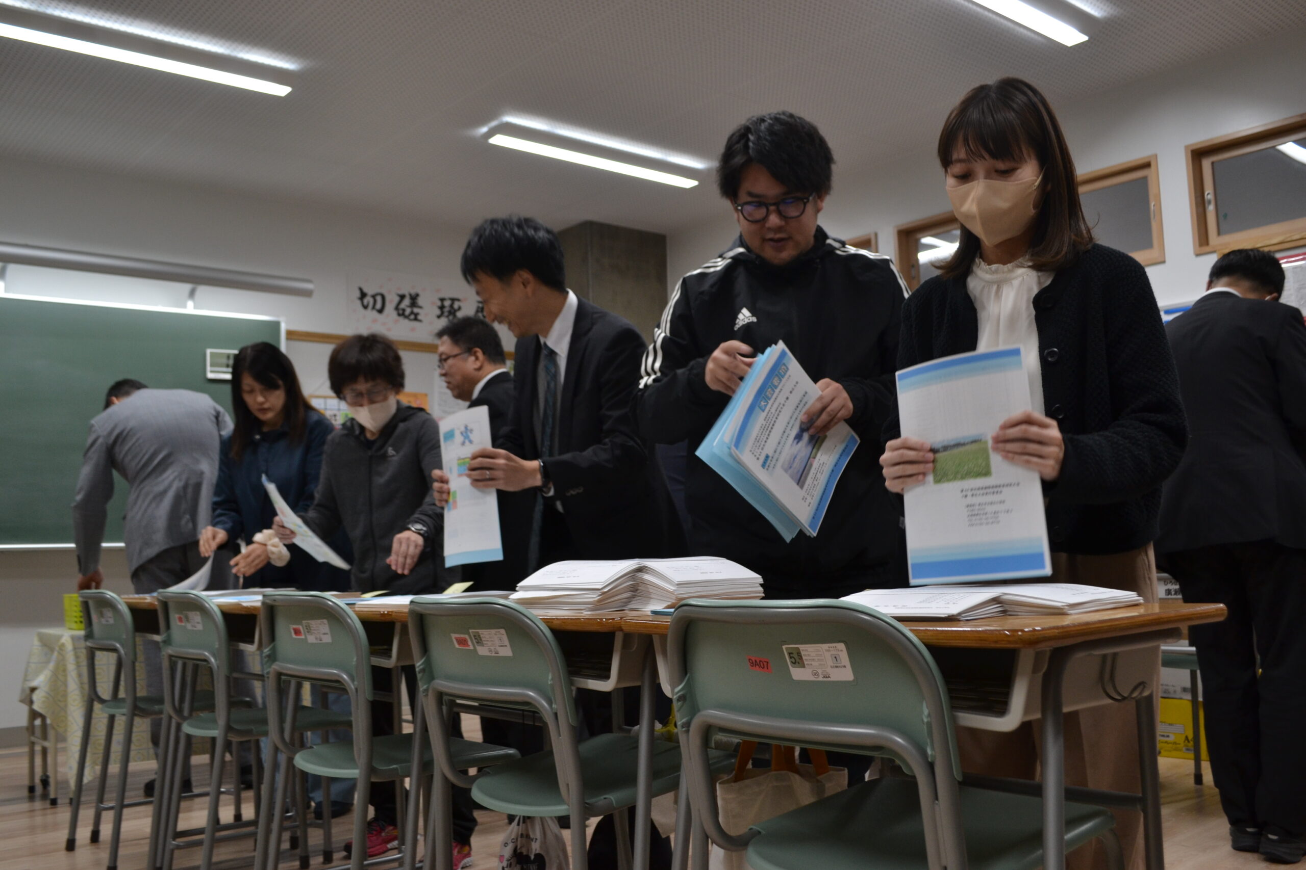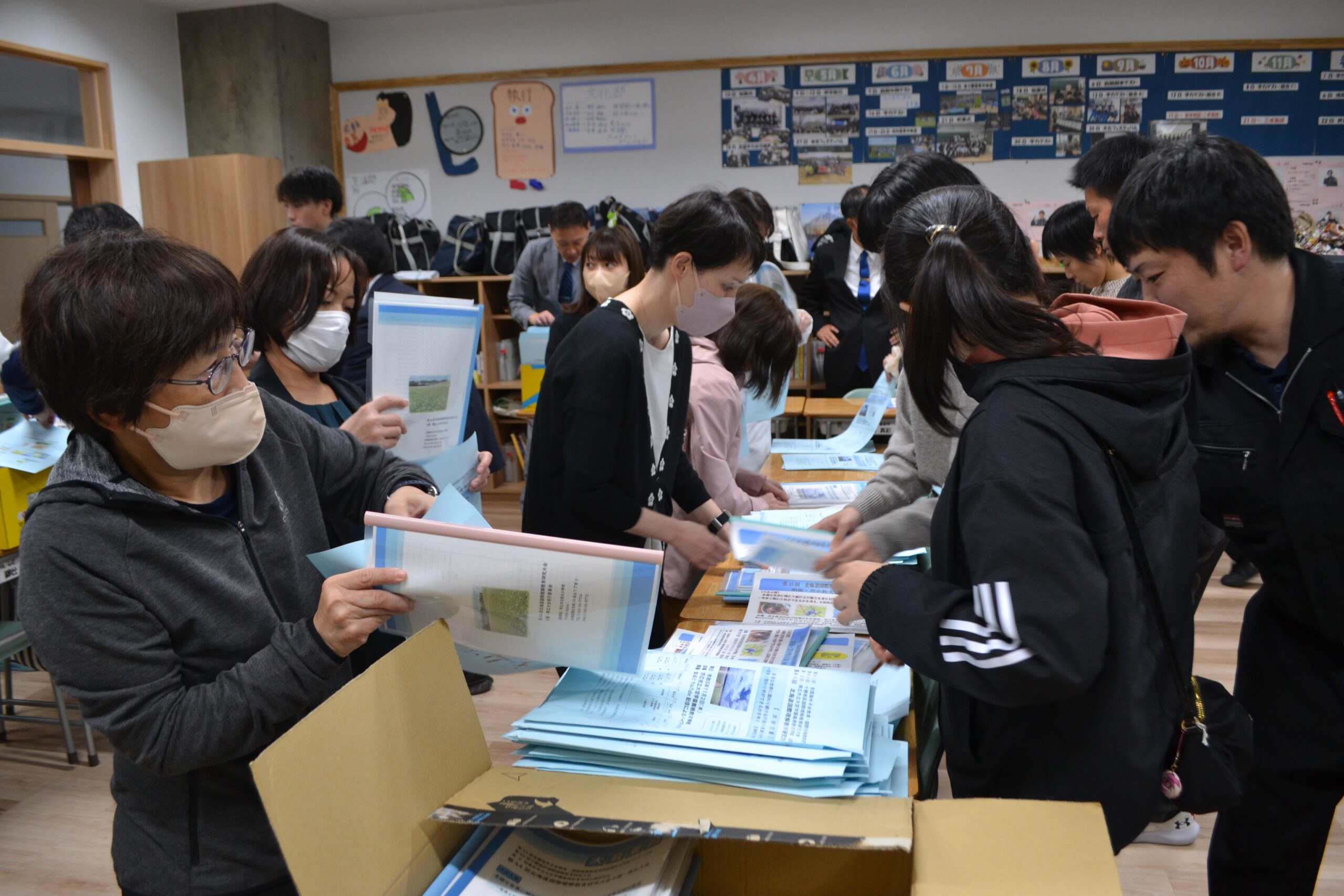 10月23日(月)に大会実行委員会が開かれ、大会当日の細かな確認を行いました。その後、教室に入りきれないほどの人数で、大会要項帳合作業、資料袋詰め作業を行いました。