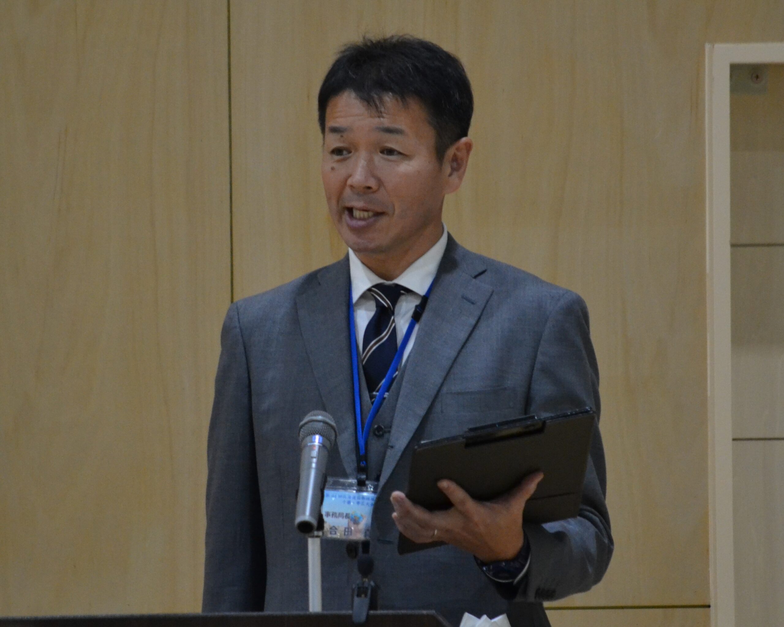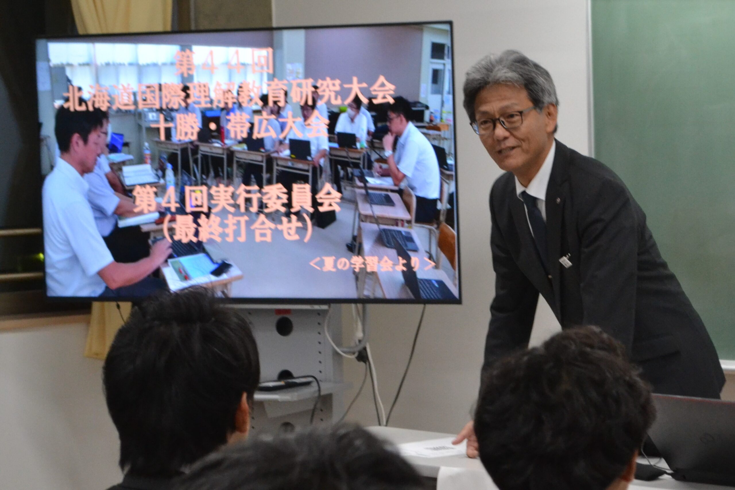 閉会式では、次期開催地である胆振地区国際理解教育研究会の髙橋慎治会長から胆振・苫小牧の魅力と研究会の取組が紹介され、十勝・帯広からバトンを渡し研究大会を終えました。1年以上かけて準備してきた十勝・帯広大会。国際理解教育研究会会員や会場校である大空学園の先生方とのつながりが更に深まったことを実感できた達成感あふれる大会となりました。