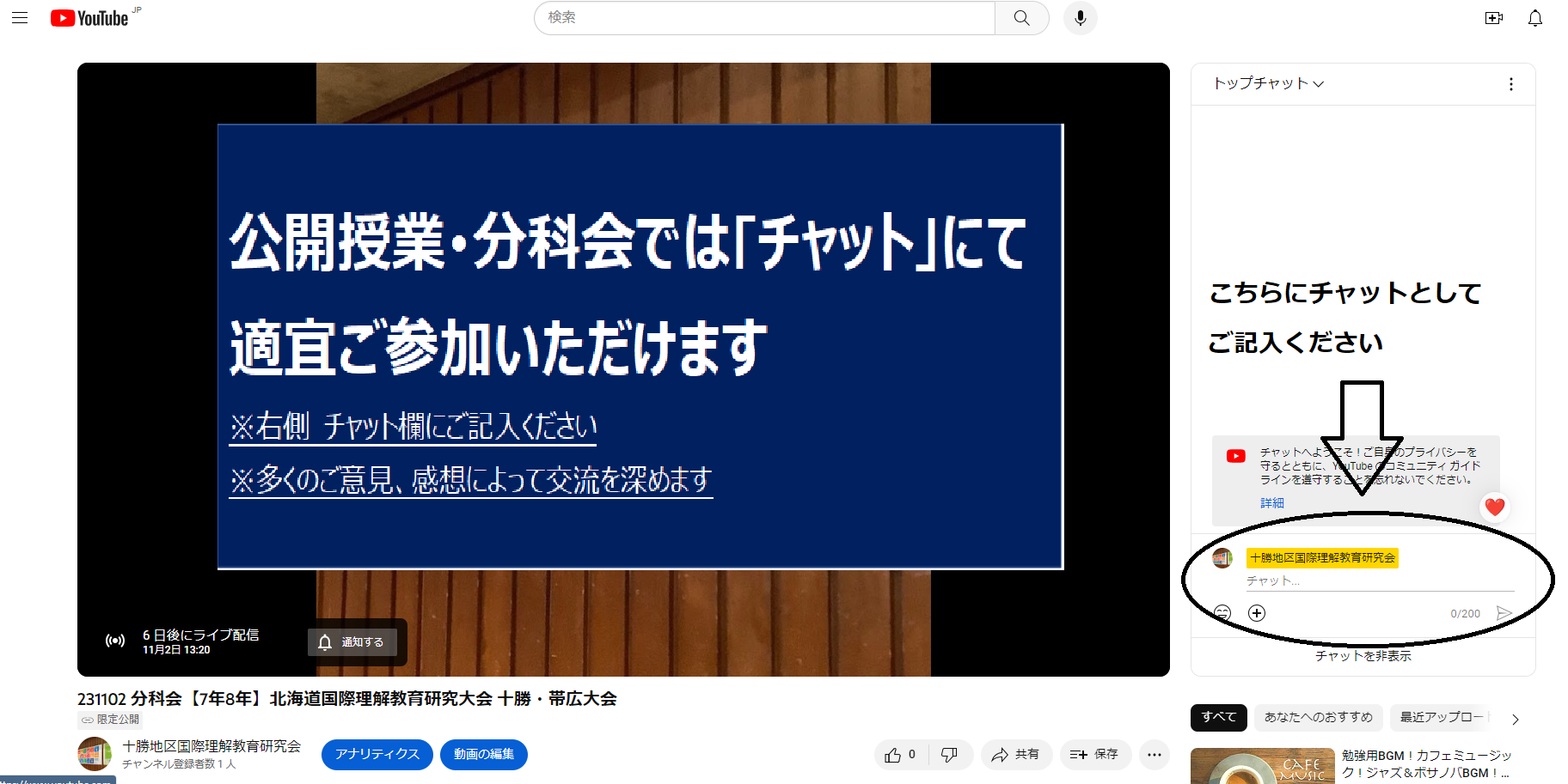 分科会 YouTubeライブ配信