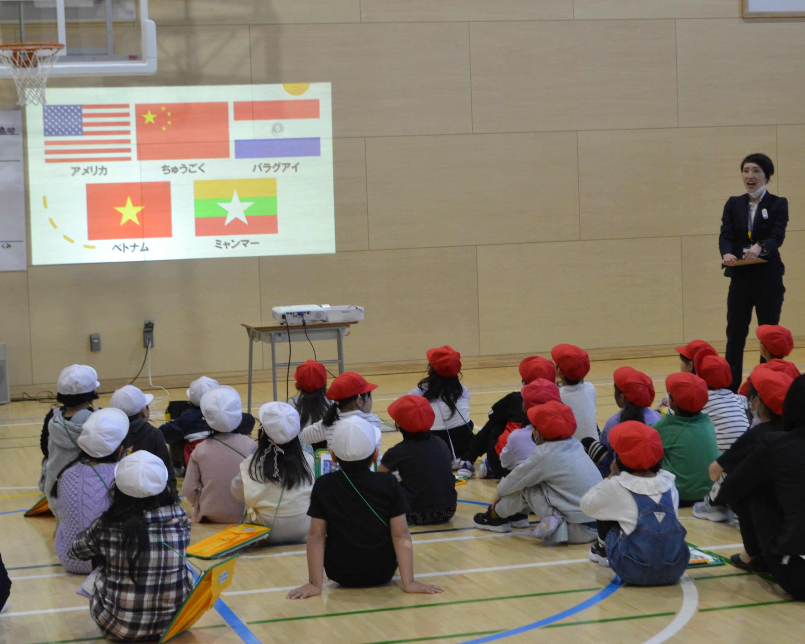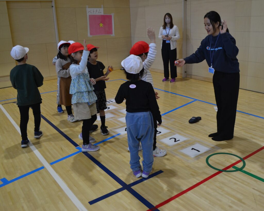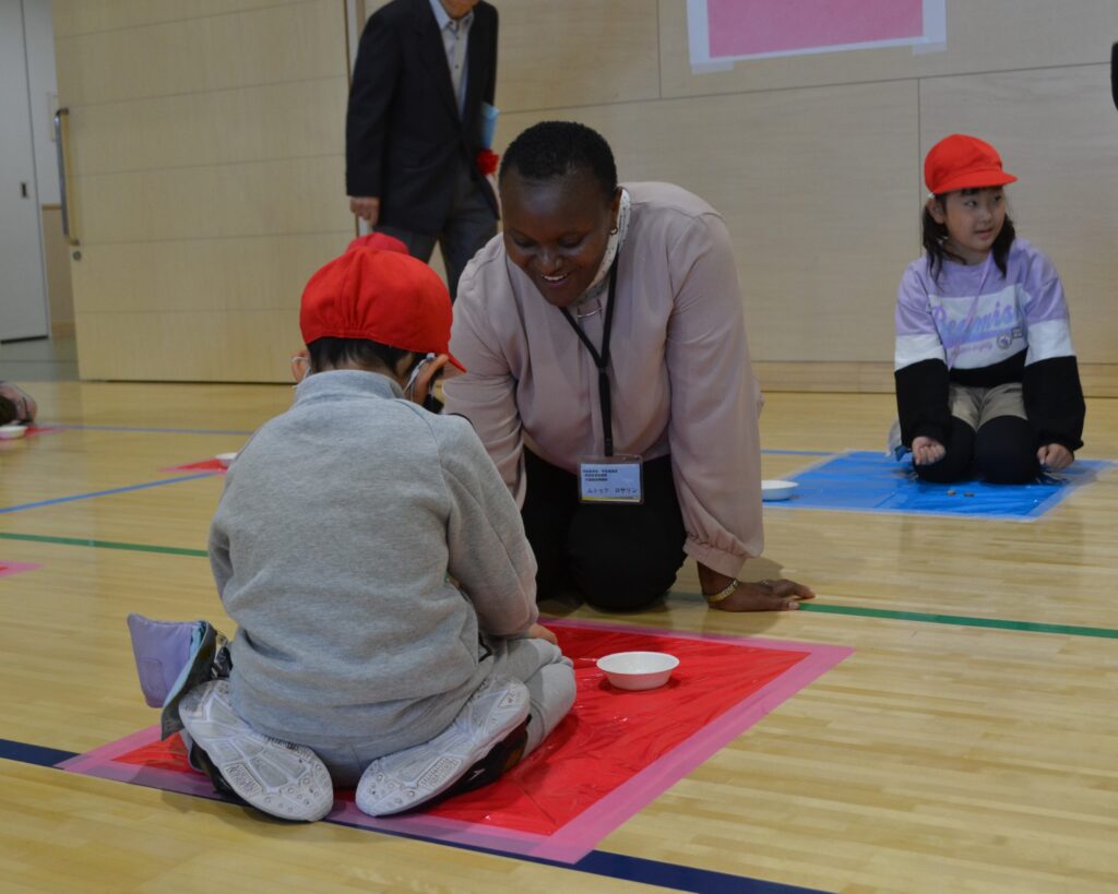 1年生は、様々な国の遊びをその国の方々に直接教えてもらい、日本の遊びとの相違点を知る授業でした。元気いっぱいに楽しみながら外国の遊びの文化を知る授業となりました。