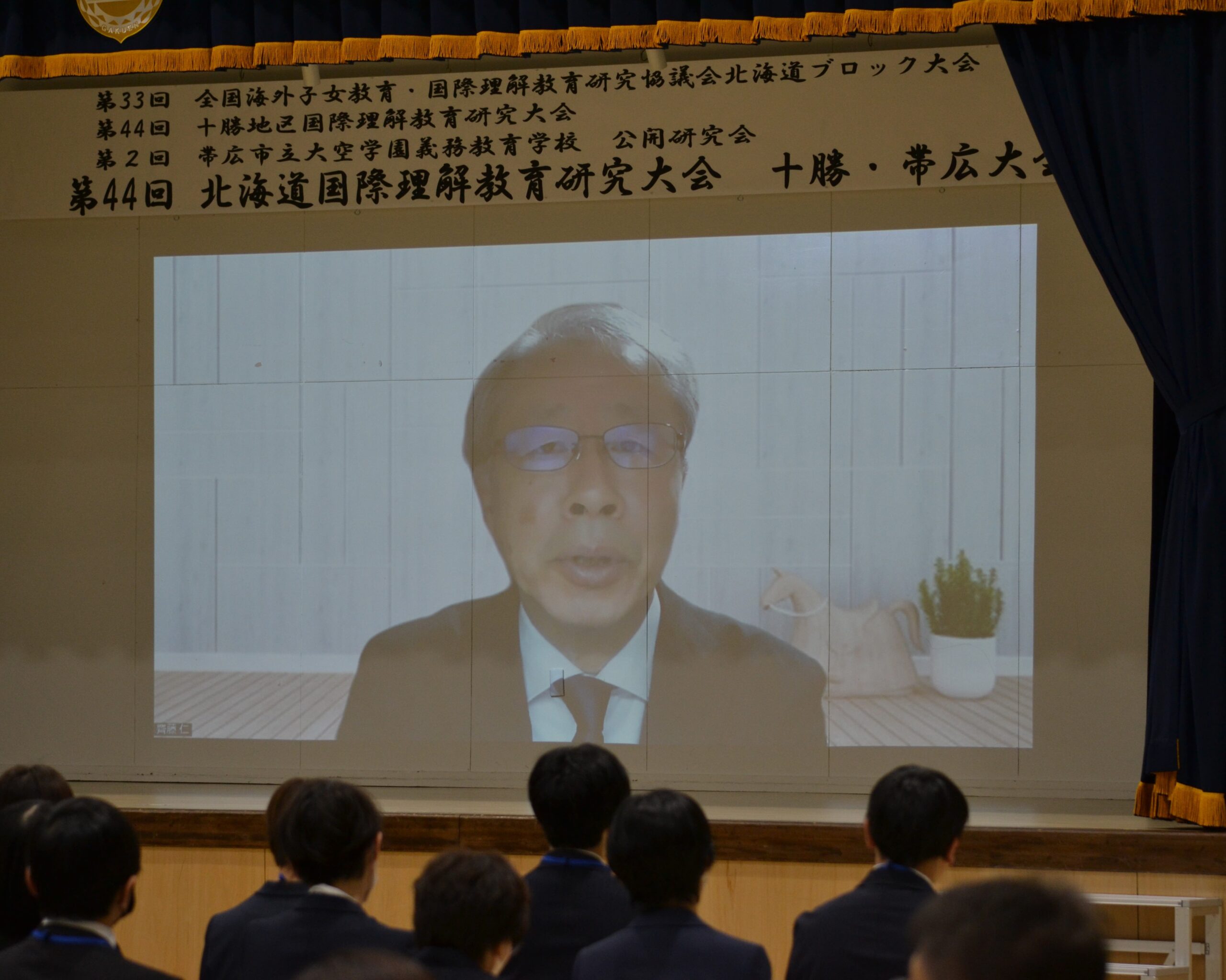 開会式では、全国海外子女教育・国際理解教育研究協議会の滝多賀雄会長よりビデオメッセージが届きました。