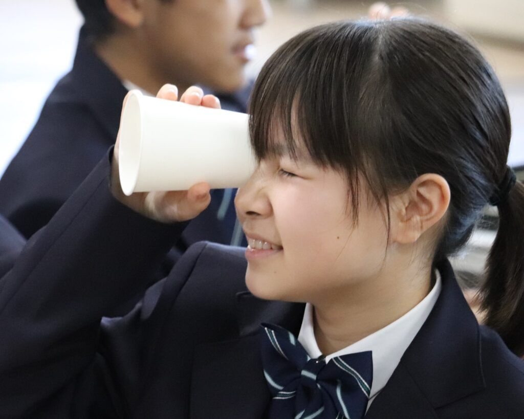 7年生は、国によって虹の色の数が違うことをきっかけとし、光の屈折について学習を深めました。分光シートをつかって教室で虹を観察し、同じクラスの人たちの間でも虹をつくる色の数に違いがあることを知りました。多様性を尊重する心を育てる素晴らしい授業となりました。