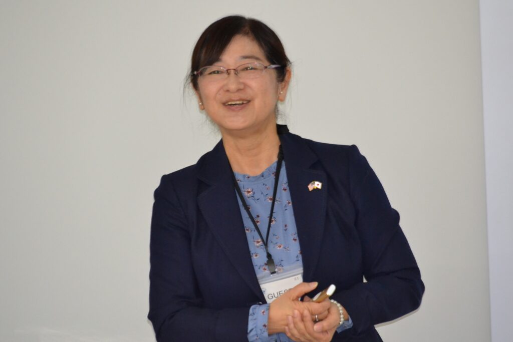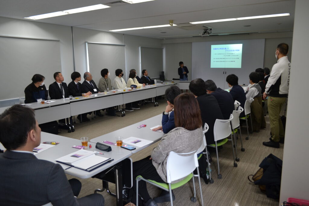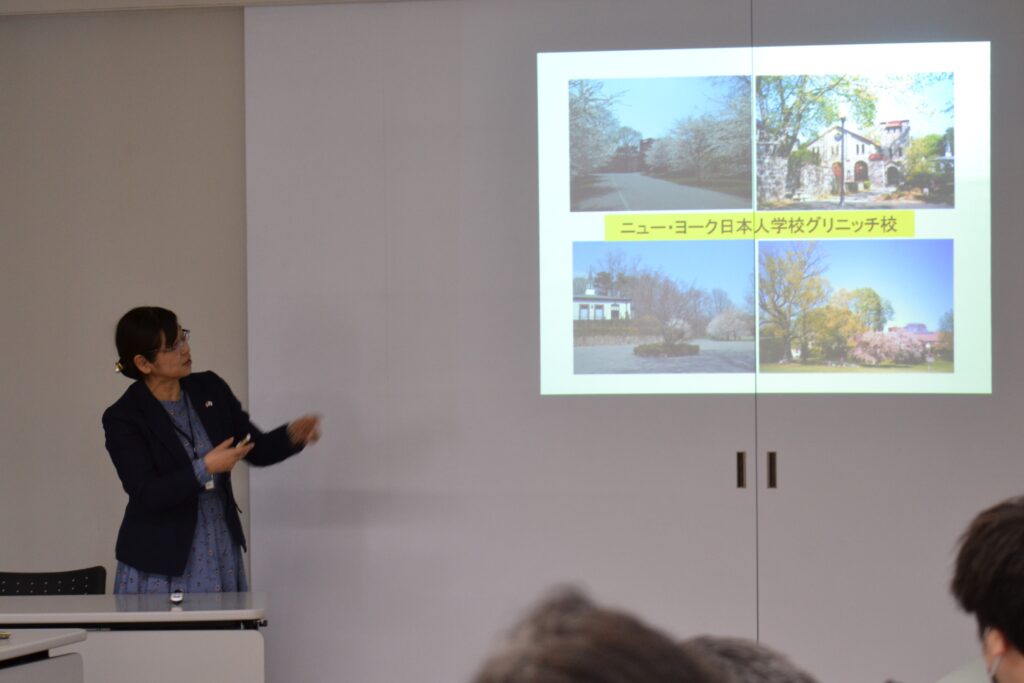初めに、佐藤育子校長先生からニューヨーク日本人学校グリニッジ校の経験を、当時の写真を交えながらお話ししていただきました。アメリカ同時多発テロ事件が起こった時期の赴任で、大変貴重な危機管理に係るお話を聞くことができました。「日常を取り戻すことが児童生徒への最大の心のケア」「できるだけ明るくやろう」と心がけて対応したとのことでした。海外から日本を見ることで、日本の教育の良さを改めて学んで帰国したそうです。