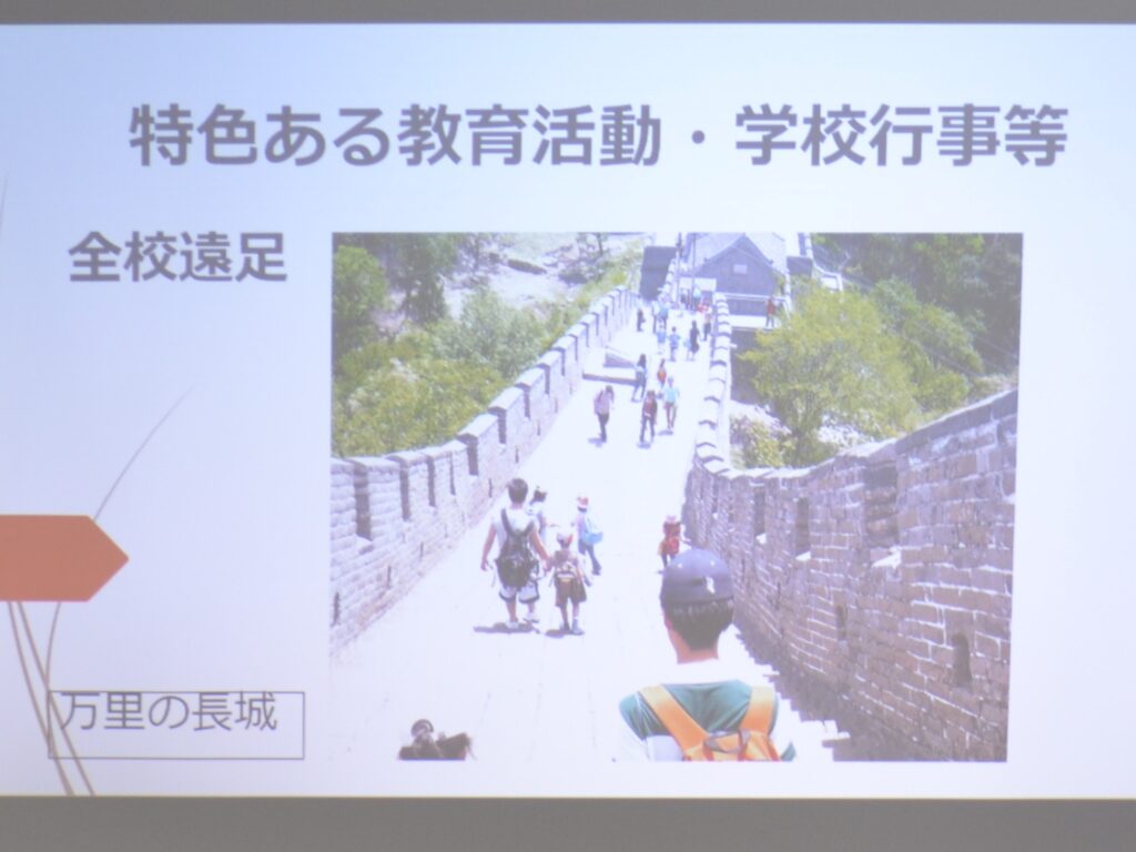 森本聡校長先生には、20年前の北京日本人学校での経験を素敵な写真を交えながらお話していただきました。SARS(新型肺炎)の流行時に着任し様々な心配があったようですが、報道で知る中国よりも現地はそれほど混乱していなかったとのことでした。興味深かったのが、パンダ研究施設でのパンダの抱っこ体験はかなり高額ですが、レッサーパンダは割とリーズナブルだったそうです。